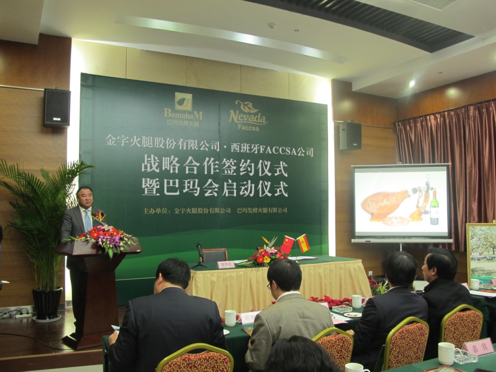 西班牙FACCSA公司負(fù)責(zé)人拉蒙先生在致辭中表示,發(fā)酵火腿在中國(guó)有巨大的市場(chǎng)空間,巴瑪火腿是中國(guó)發(fā)酵火腿的領(lǐng)軍品牌。雙方建立戰(zhàn)略合作關(guān)系,是企業(yè)發(fā)展需要,也是優(yōu)勢(shì)互補(bǔ)的最佳選擇。今后,雙方要整合資源,加強(qiáng)交流,深化合作,努力把兩個(gè)企業(yè)的合作打造成中西兩國(guó)經(jīng)貿(mào)合作的典范。
