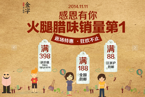 入了12月的江南,空氣中總會飄散著一股似近似遠的肉香味,勾人魂魄到直咽口水。窗檐下懸掛的香腸臘肉有一種“年之將近”的即視感,因為那就是刻到骨子里的年味啊。就算時代再變化,“小雪腌菜,大雪腌肉”的習慣依然被懂得生活的人代代傳承著。2014年的金字天貓旗艦店雙12來了,為您準備的好臘味上新,十二道臘味年前抄底價。春運車票已經可以買了,臘味也同樣:回家過春節(jié),你準備好了沒有?